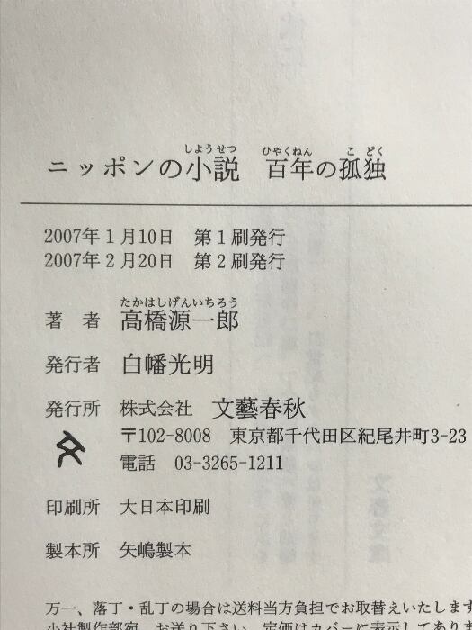 タイトル:百年の孤独 ニッポンの小説 文藝春秋 高橋 源一郎