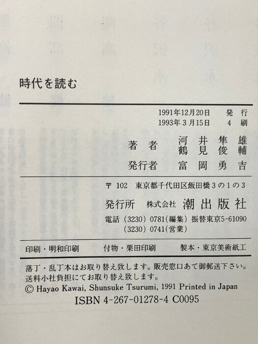 タイトル:時代を読む 潮出版社 河合 隼雄