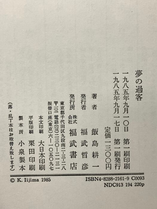 タイトル:夢の過客 福武書店 飯島 耕一