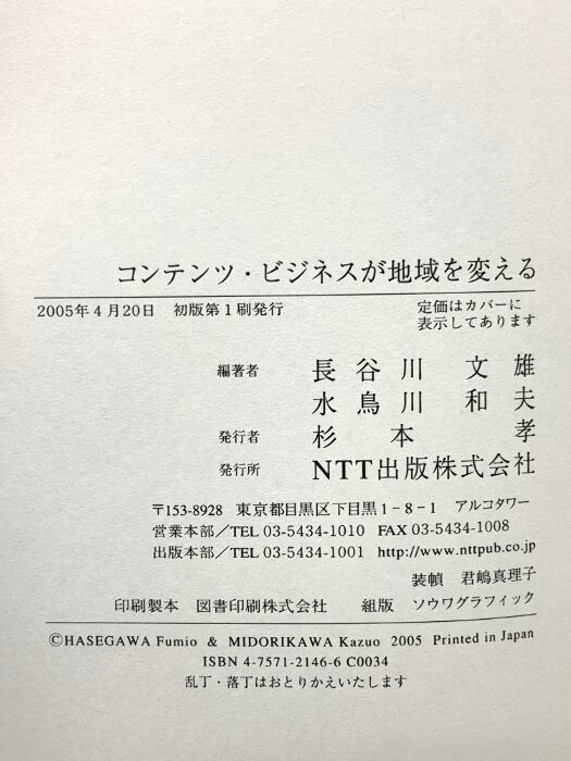 タイトル:コンテンツ・ビジネスが地域を変える NTT出版 長谷川 文雄