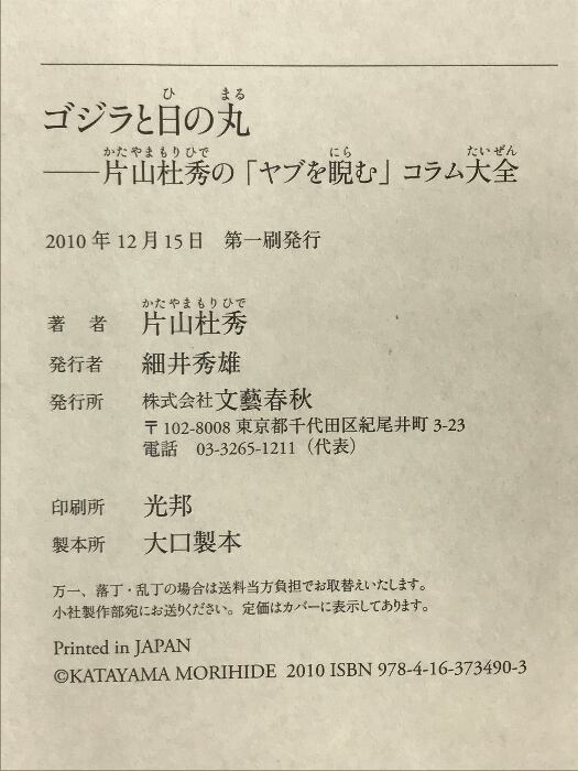 タイトル:片山杜秀の「ヤブを睨む」コラム大全 ゴジラと日の丸 文藝春秋 片山 杜秀