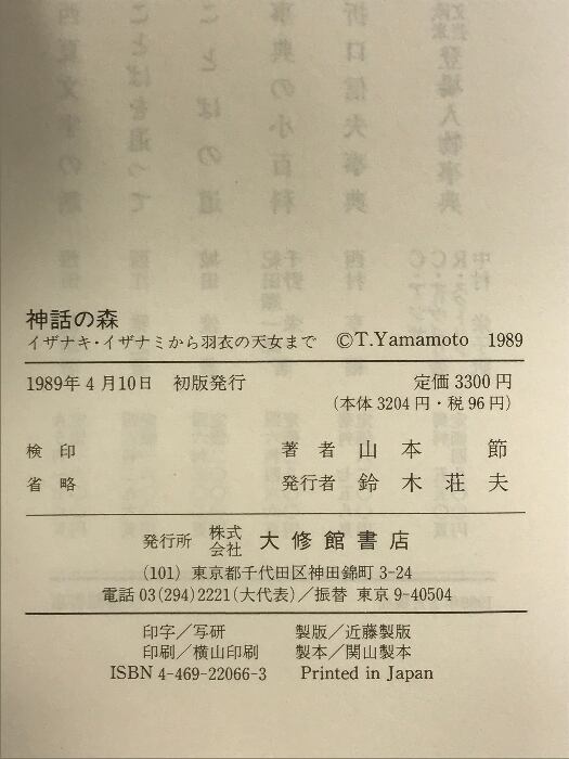 タイトル:神話の森: イザナキ・イザナミから羽衣の天女まで 大修館書店 山本 節