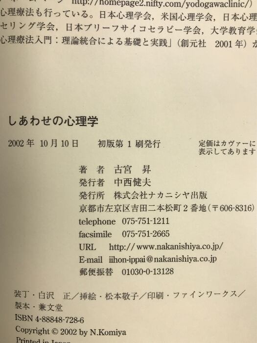 タイトル:しあわせの心理学 ナカニシヤ出版 古宮 昇