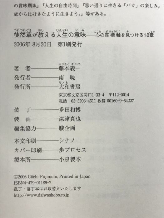 タイトル:徒然草が教える人生の意味―心の座標軸を見つける18章 大和書房 藤本 義一