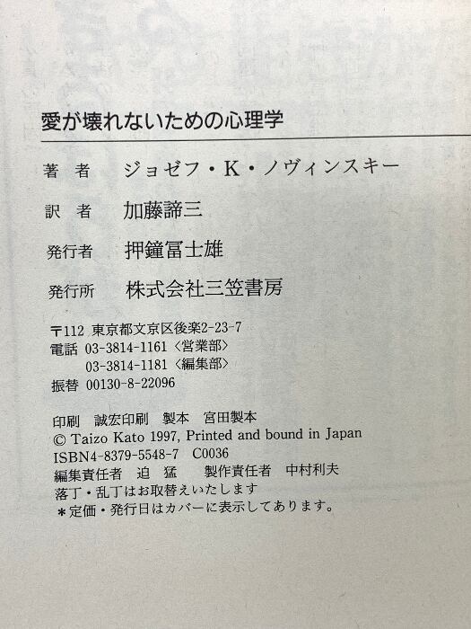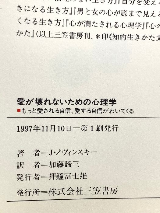 愛が壊れないための心理学 三笠書房 ジョゼフ・K・ノヴィンスキー
