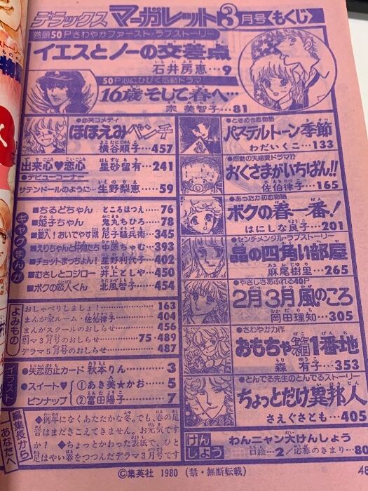 4 デラックス マーガレット 昭和55年3月1日 3月号 集英社 イエスとノーの交差点 宗 美智子 はにしな良子 さえぐさとも