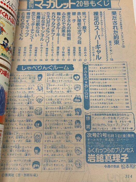 6 週刊マーガレット 1981年5月8日号 No.20 集英社 裸足のスーパーギャル 青空・スキップ 笑って殿下