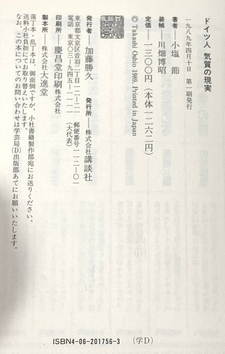 ドイツ人気質の現実 講談社 小塩 節