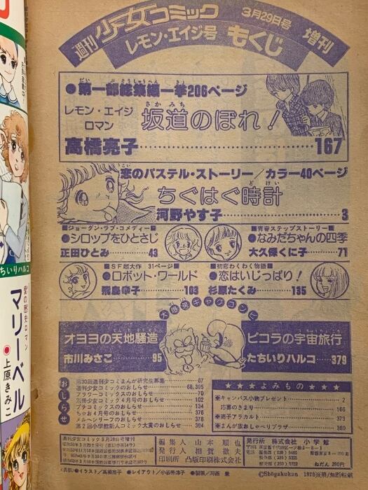 63 週刊 少女コミック 昭和53年 3月29日号 増刊 レモンエイジ号 坂道のぼれ 高橋亮子 ちぐはぐ時計 河野やす子 小学館