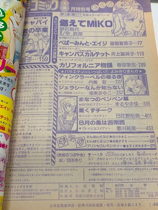 4 別冊少女コミック 1981年8月号 小学館 燃えてMIKO 堤聖子 穂実あゆこ まるやま佳