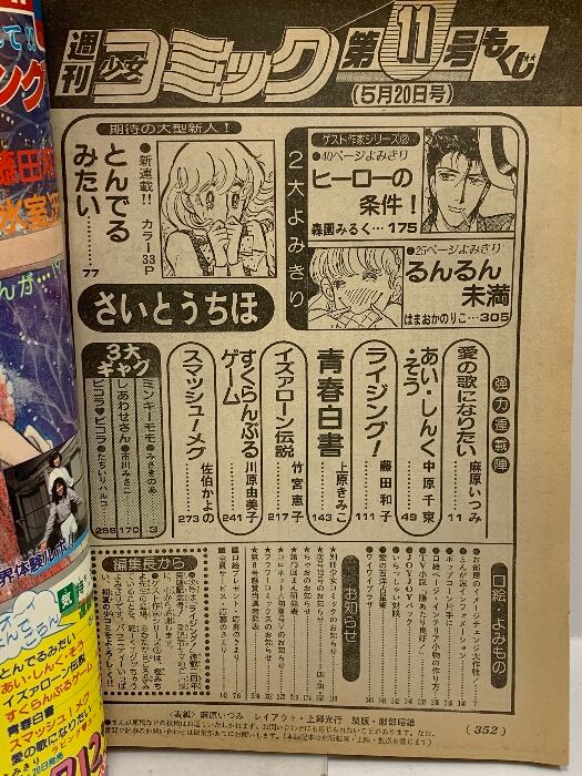 タイトル:72 週刊 少女コミック 昭和57年5月20日 No.11 麻原いつみ さいとうちほ あだち充 小学館