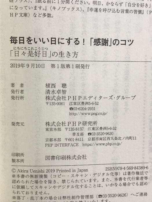 タイトル:毎日をいい日にする! 「感謝」のコツ PHP研究所 植西 聰