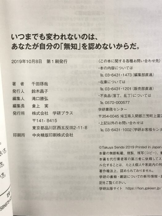 タイトル:いつまでも変われないのは、あなたが自分の「無知」を認めないからだ。 学研プラス 千田琢哉