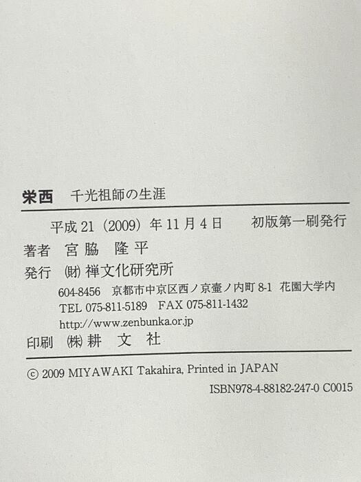 タイトル:栄西 千光祖師の生涯 禅文化研究所 宮脇 隆平