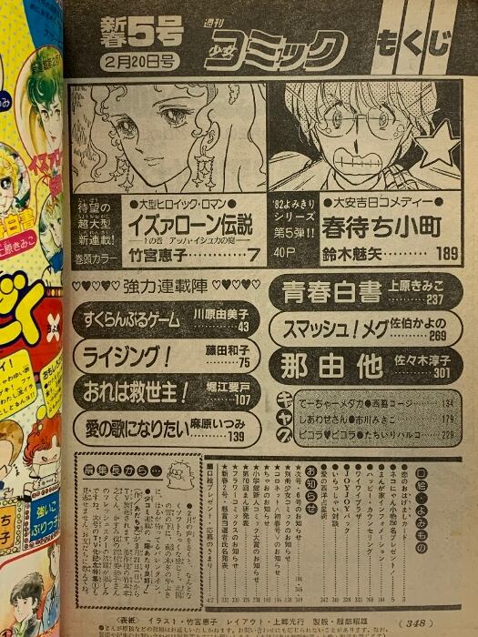 80 週刊 少女コミック 昭和57年2月20日 No.5 竹宮恵子 愛乃歌になりたい 那由他 ライジング 小学館