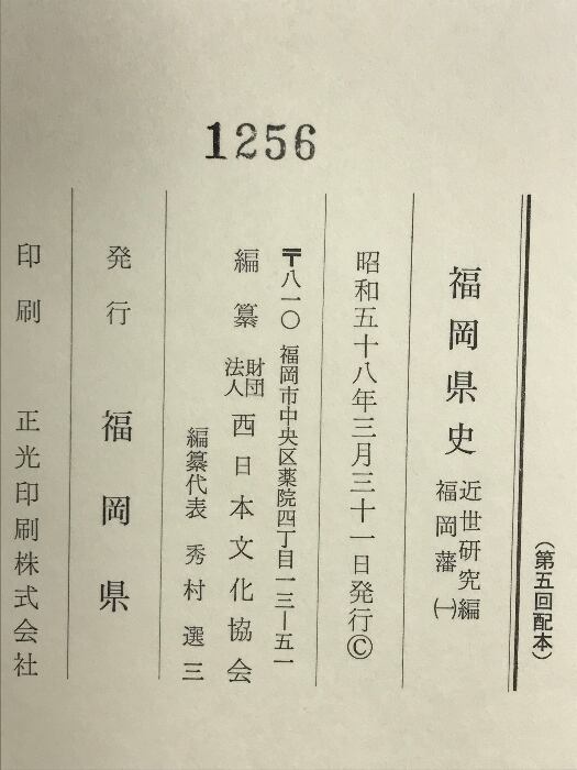 福岡県史 近世研究編 福岡藩(1)発行:福岡県 昭和58年