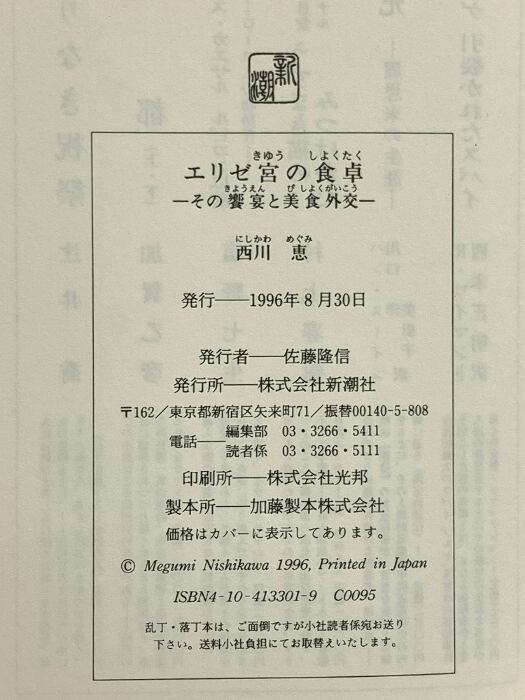 タイトル:エリゼ宮の食卓 その饗宴と美食外交 新潮社 西川 恵