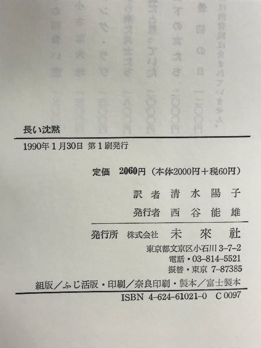 タイトル:長い沈黙: リトアニアの少女 ナチ収容所より還る 未来社 マリア ロリニカイテ