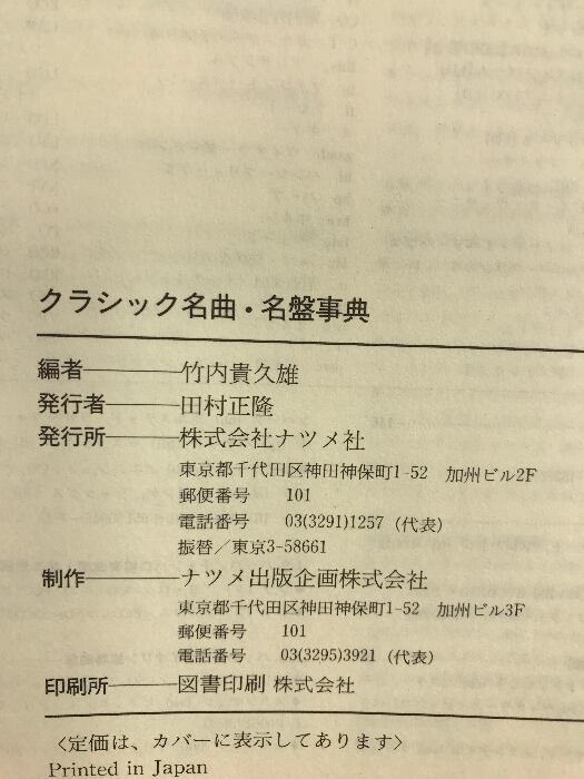 クラシック名曲・名盤事典: 貴重で珍しいジャケット写真が満載 ナツメ社 竹内 貴久雄