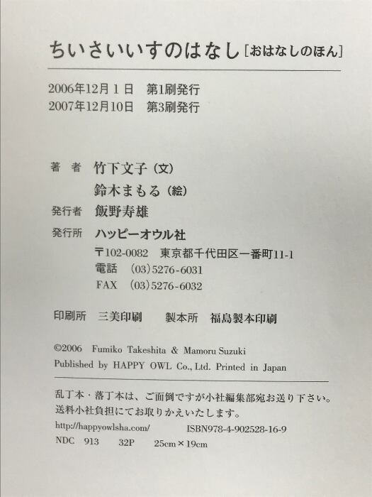 ちいさいいすのはなし (ハッピーオウル社のおはなしのほん) ハッピーオウル社 竹下 文子