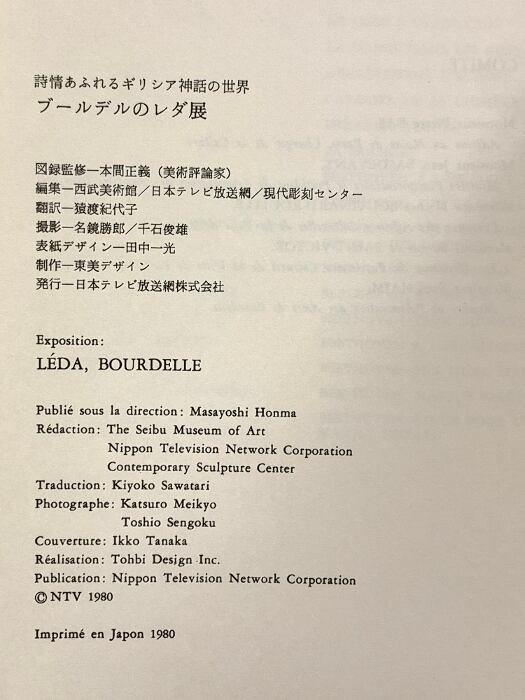 図録 ブールデルのレダ展 詩情あふれるギリシャ神話の世界 1980 日本テレビ放送網株式会社