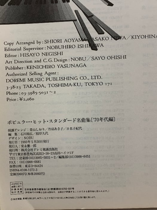 ポピュラーヒットスタンダード70 ドレミ楽譜出版社