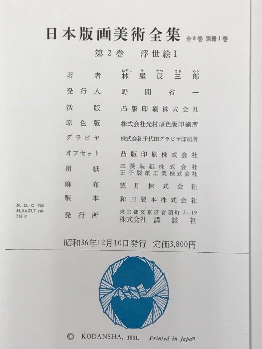 【図録】浮世絵(1)師宣-春信 日本版画美術全集第2巻 講談社 著:林屋辰三郎 昭和36年