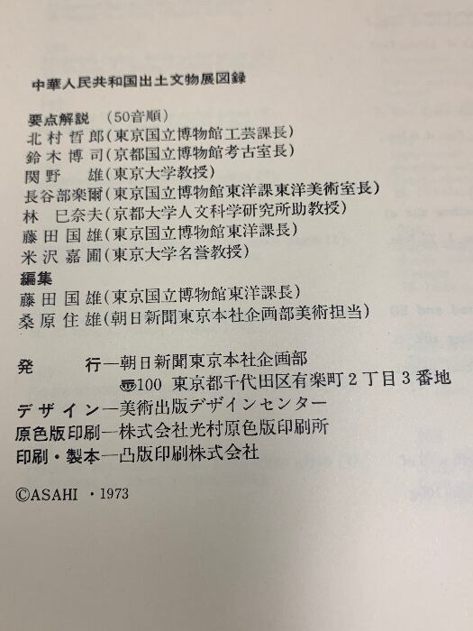 図録 中華人民共和国出土文物展 朝日新聞社 1973