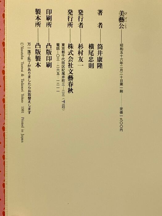 美藝公 筒井康隆作 昭和56年 文芸春秋