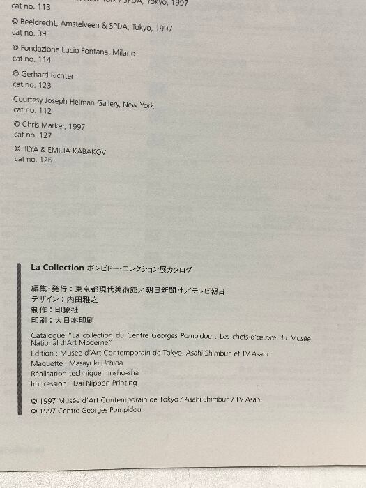 図録 ポンピドー・コレクション展 1997 東京都現代美術館 朝日新聞社