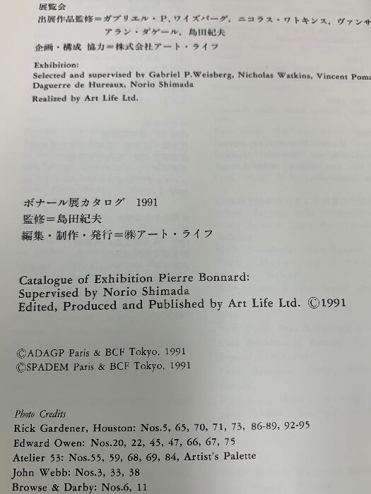 タイトル:図録 ボナール展 アート・ライフ 1991