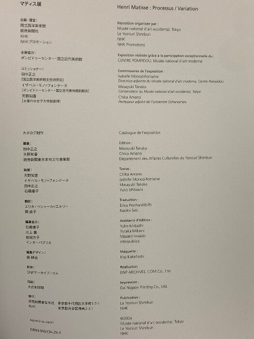 図録 マティス展 2004 読売新聞東京本社