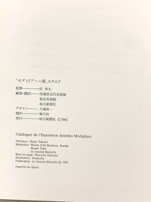タイトル:図録 モディリアーニ展 1992 毎日新聞社