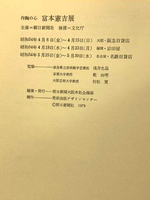 タイトル:作陶の心 富本憲吉展 1979 朝日新聞大阪本社企画部