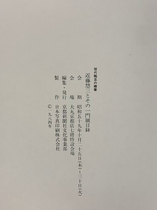 図録 近藤悠三とその一門展 1984 京都新聞社文化事業部