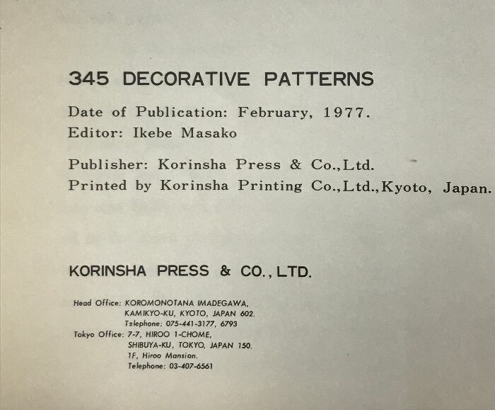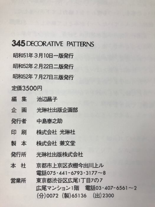 タイトル:345DECORATIVE PATTERNS=装飾文様 光琳社出版 池辺昌子編 1977