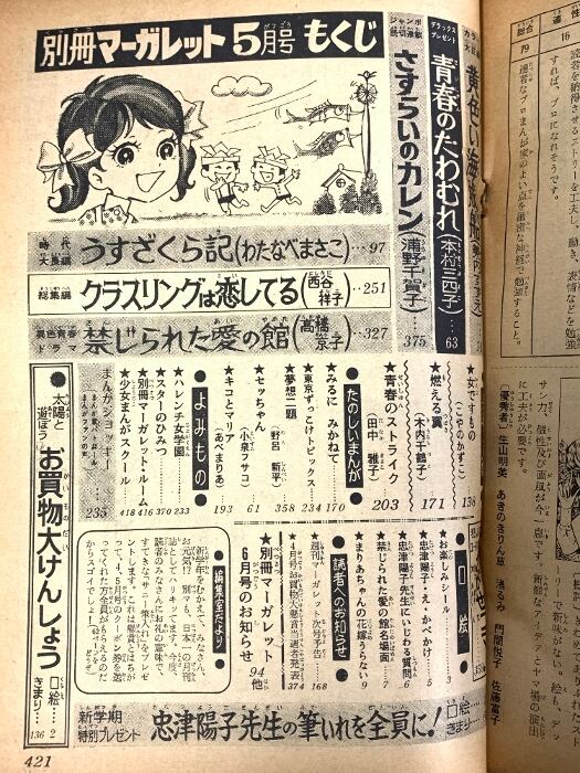 2 別冊 マーガレット 1971年 5月号 集英社 美内すずえ わたなべまきこ 高橋京子