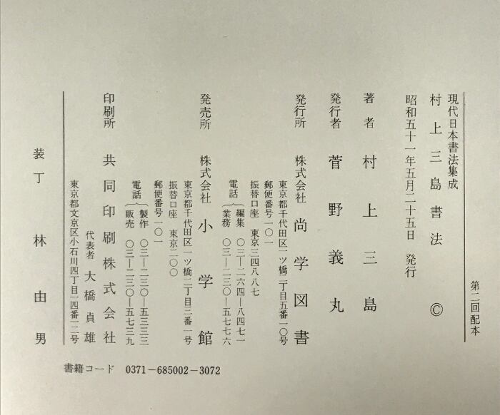 【図録】現代日本書法集成「村上三島書法」発行:尚学図書 著:村上三島 昭和51年
