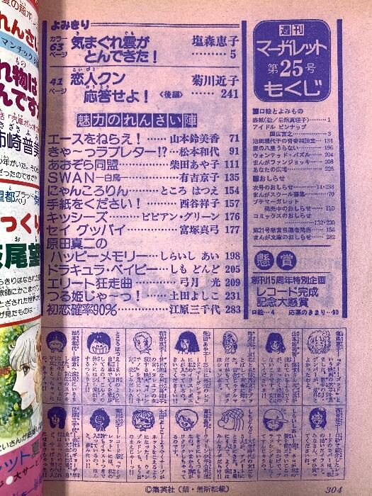 10 週刊 マーガレット 1978年 6月11日 NO.25 集英社 塩森恵子 エースをねらえ 柴田あや子 有吉京子
