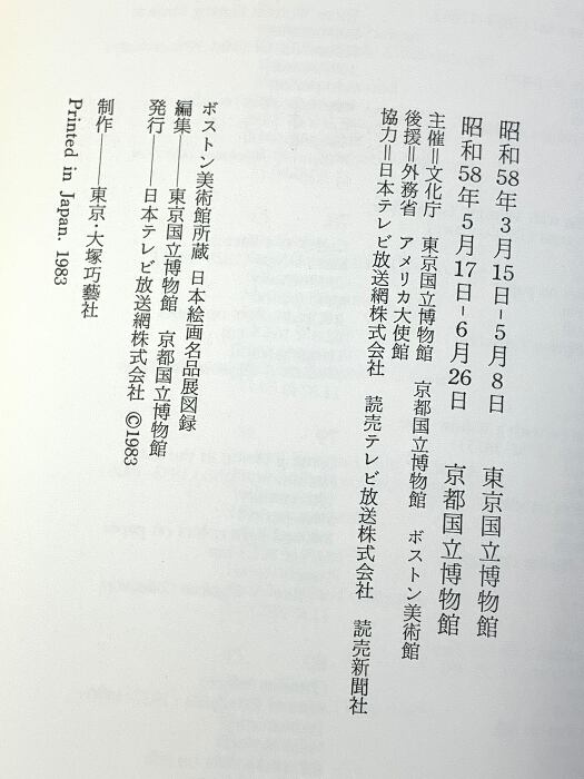 図録 ボストン美術館所蔵 日本絵画名品展 1983 東京国立博物館 京都国立博物館