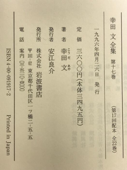 タイトル:幸田文全集 第17巻 岩波書店 幸田 文