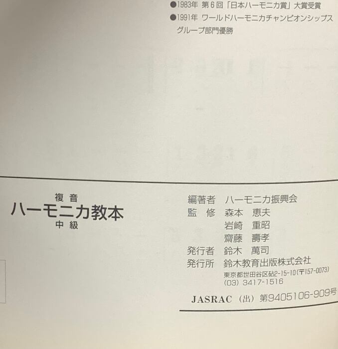 楽譜 複音 ハーモニカ教本 中級 ハーモニカ振興会