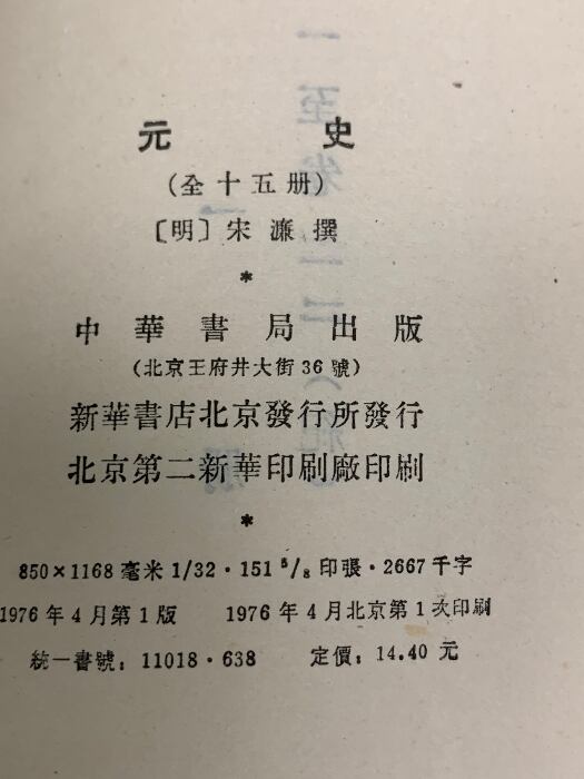 タイトル:中国書 元史 中華書房 全15巻セット