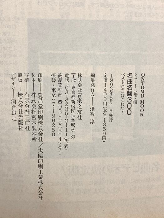 タイトル:レコード芸術編 名曲名盤300 ベストCDはこれだ! 1993年5月1日発行 音楽之友社