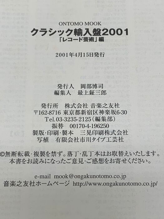 タイトル:クラシック輸入盤 (2001) (ONTOMO MOOK) 音楽之友社 レコード芸術