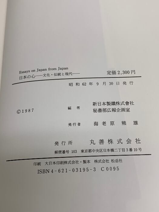 タイトル:日本の心: 文化・伝統と現代 丸善出版 新日本製鐵秘書部広報企画室