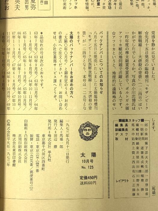 太陽 ‘73 10 THE SUN no.125 昭和48年9月12日発行 特集:西行・漂泊の生涯 平凡社