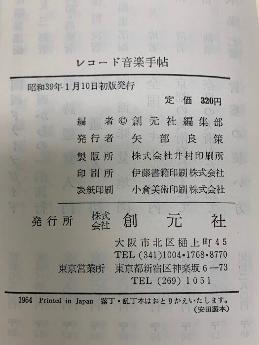 レコード音楽手帖―収集案内 (創元手帖文庫) 創元社 創元社編集部