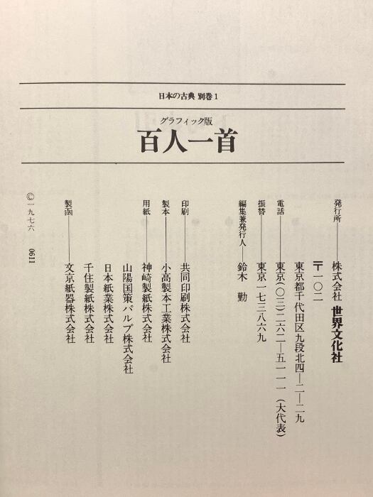 図録 百人一首 グラフィック版 日本の古典 別巻1 1976 世界文化社