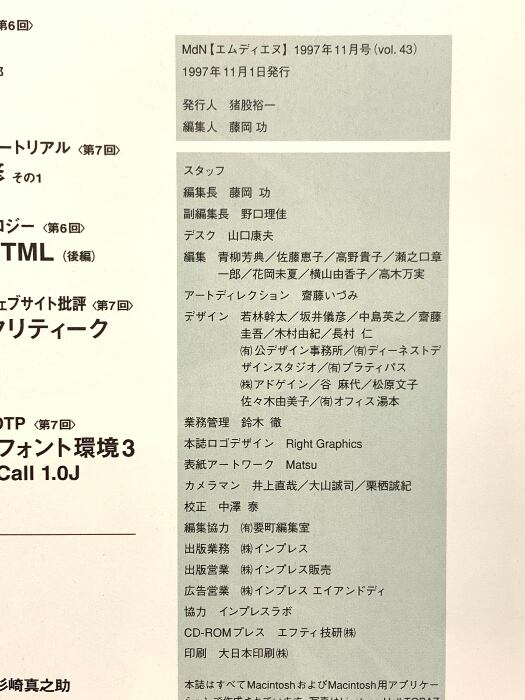 MdN(エムディエヌ) 11月号 1997年11月1日発行 グラフィックス&DTP プロが教える仕上げのテクニック エムディエヌコーポレーション CD-ROM付